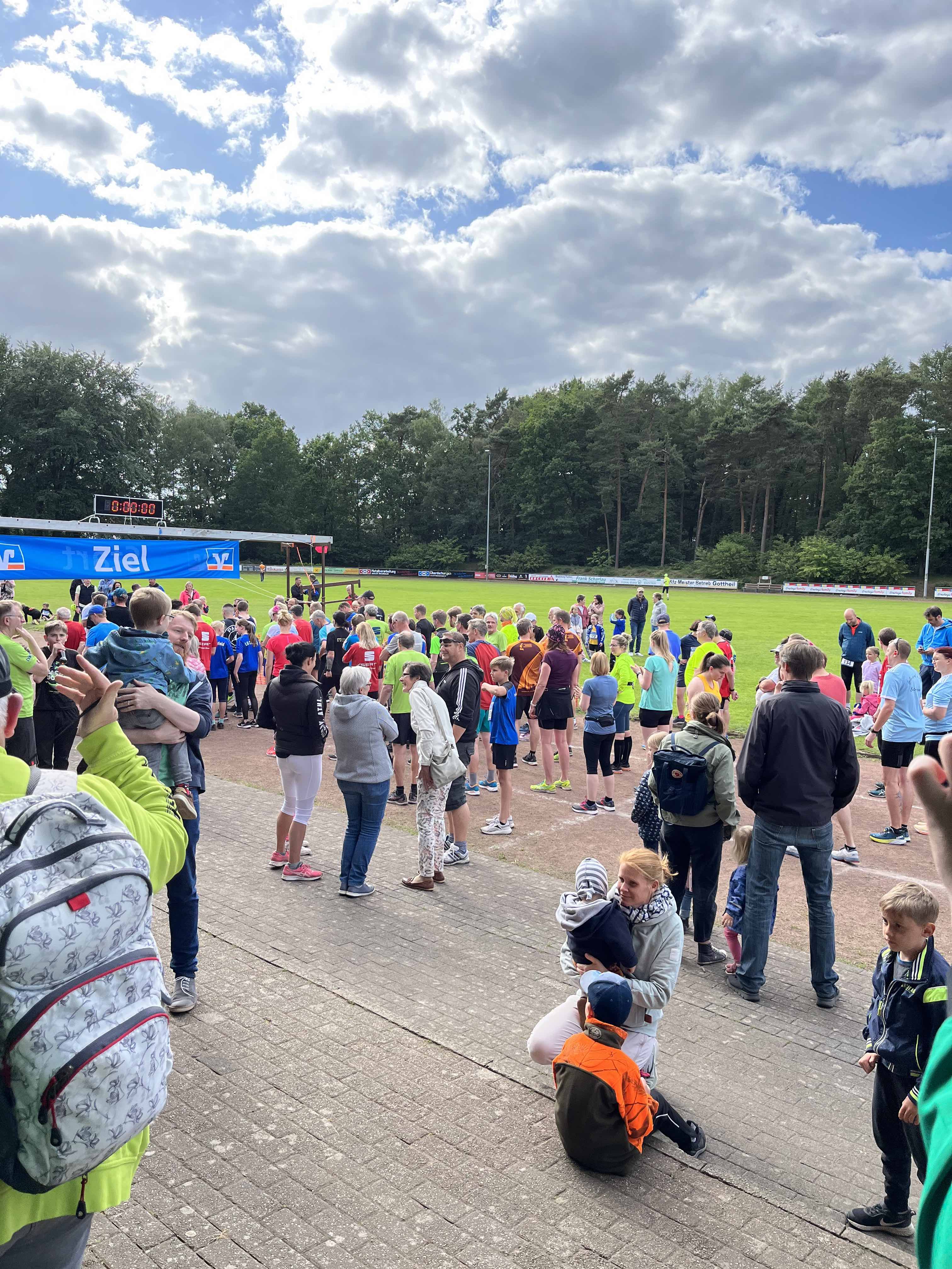 An Fronleichnam, am 16.06.2022, fand der 1. Selmer Stadtfestlauf, bei sonnigem, leicht schwülen Sommerwetter, im Rahmen des Selmer Stadtfestes statt. Organisiert wurde das Laufevent von der Stadt Selm, dem FoKuS und dem TriTeam. Gelaufen wurde an diesem Tag durch und um die erst neu gestaltete Auenparklandschaft. Der an diesem Tag zu laufende 2,5km lange Rundkurs für die längeren, an diesem Tag angebotenen, Laufstrecken erstreckte sich über das Sportplatzgelände, den Auenpark und das Campus Nord Gelände. Die Strecke war sehr flach, mit viel asphaltiertem Untergrund, jedoch mit der ein oder anderen Spitzkehre. Die erste Auflage der Laufveranstaltung beinhaltete einen Bambini-Lauf über 800m, einen Jedermannlauf über 5km und einen Lauf über die Königsdistanz über 10km. Probleme an diesem Tag tauchten leider bei der nicht amtlich vermessenden Laufstrecke auf. Die ausgeschriebene 2,5km lange Rundstrecke war mit nur ~2,3km etwas zu kurz abgemessen worden. Damit war die 5km Renndistanz nur effektiv ~4,5km lang und die 10km Renndistanz ~9,1km lang. Sprich die Endzeiten der Athletinnen und Athleten sind mit Vorsicht zu genießen. (ca. +3min) Trotz alle dem purzelten an diesem Tage viele, viele Bestzeiten. Der Lauftreff war an diesem Tag mit 5 Läufern auf der 10km Distanz am Start. Maskottchen Ecki und der verletzte Läufer Linus feuerten am Streckenrand lautstark an. Das Starterfeld des 10km Laufes bestand dabei aus gerade einmal 42 Teilnehmerinnen und Teilnehmern. Andreas Koch, AK M50 erreicht als erster Lüdinghauser, nach unfassbaren 35:17min, die Ziellinie am Sandforter Weg. Er wurde 4. Gesamtplatz. Magnus Nibbenhagen, AK M55 erreichte sichtlich zufrieden die Ziellinie nach den 4 Runden in einer Zielzeit von 40:46min und einem 9. Gesamtplatz. Dicht gefolgt von Thomas Holtmann, AK M50, welche nur ca. 2 Minuten später, nämlich nach 42:32min die Ziellinie überquerte. Im Anschluss erreichte der Lauftreffler Richard Deters, AK M60, das wohlverdiente Ziel nach 43:43min. Schnapszahl – welche Er im Anschluss an das Event mit einem von ihm eingeladenen Umtrunk feierte. DANKE. Das Läuferfeld aus Lüdinghausen komplettierte Torsten Koch AK M40 nach 44:38min. Er landete den 19. Gesamtplatz im Starterfeld. Im Verlauf der Veranstaltung erschien Christoph Schlütermann noch mit seinem Gravel-Bike zum tatkräftigen anfeuern und unterstützen des Teams. Im Anschluss an das Rennen gab es in gemeinsamer Runde das obligatorische Kaltgetränk. Leider wurde das Event mit zu wenig Werbung publiziert, sodass das Event von der Anzahl der Starter*innen überschaubar war. Jedoch wird sich das in den kommenden Jahren mit Sicherheit ändern und das Teilnehmerfeld wird sich sukzessiv steigern. Das Event war wirklich eine tolle Veranstaltung! Großes Lob an die Veranstalter aus Selm.