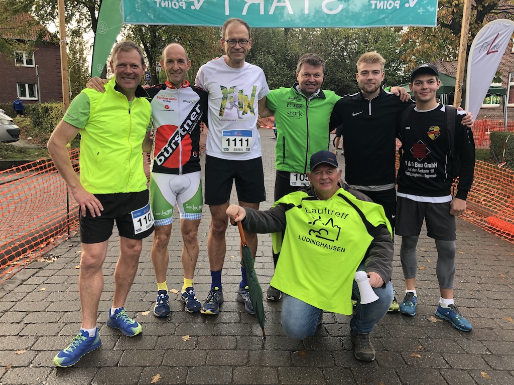 Am Samstag, den 10.11.2019 lud der ASV Senden zum Jubiläumslauf unter dem Motto „Senden Läuft“, Läuferinnen und Läufer aus der umliegenden Region zum Wettkampf in den Sportpark ein. Die erst kürzlich neu vermessenen Strecken vom DVL über die 5km und 10km entlang der Park- und Kanalseitenwege war bestens vorbereitet für das Rennen. Der Veranstalter ASV Senden, sorgte rundum für einen reibungslosen, läuferfreundlichen und „familiären“ Nachmittag. So wurden die Strecken 1000m, 3000m, 5000m bis zur Königsdistanz über 10000m angeboten. Der Rundkurs, eine 2,5km lange Strecke, enthielt in diesem Jahr dank des trockenen, sonnigen, windstillen und angenehm kühlen Wetters von 8 Grad Celsius, wenige Schikanen. Optimal Bedingungen also für den Lauftreff Lüdinghausen inklusiver seiner Athleten an die Startlinie zu gehen. So machten sich sieben Läufer auf nach Senden. Der erste Startschuss an diesem Tag ertönte für Guido Steiner AK M50 um 13:50 Uhr. Er finishte die 5000m in einer Zielzeit von 20:07min und einem 2. Altersklassenplatz. Zur Königsdistanz von 10km starteten gleich sechs Lauftreff-Heizer von 99 Starterinnen und Startern. Linus Nibbenhagen AK MU23 lief als erster Lüdinghauser ins Ziel am Stadion ein. Er finishte in 39:22 Minuten und einem 2. Gesamtplatz von allen Startern. Kurz gefolgt von dem „invaliden“ Andreas Koch AK M45, der nach Leistenbruch OP eine unglaubliche Zeit von 41:07 Minuten und einem 2. Altersklassenplatz hinlegte. Lukas Ortmann AK MU23 wurde mit einer Zeit von 42:06 Minuten 2. Altersklassenplatz. Gefolgt von Guido Steiner, welcher nach intensivem 5000m-Lauf, in 44:30 Minuten die Ziellinie überquerte. Nächster Läufer Jürgen Bootsmann AK M60 rannte eine 44:46 Minuten Zeit und wurde Altersklassensieger. Richard Deters AK M60 erlief die Stecke in 45:41 Minuten und rundete die klasse Ergebnisse der Lauftreffler an diesem Tag ab. Maskottchen „Ecki“ sorgte mit seiner guten Laune und seinem Dezibelspielzeug für ausgelassene Wettkampfstimmung am Streckenrand. Im Anschluss an den Lauf wurde die Siegerehrung sehr schnell und professionell durchgeführt. Für das leibliche Wohl der Läuferinnen und Läufer wurde ebenfalls bestens gesorgt. Bis nächstes Jahr. Nächste Laufveranstaltung: Nikolauslauf Dülmen, 07.12.2019.
